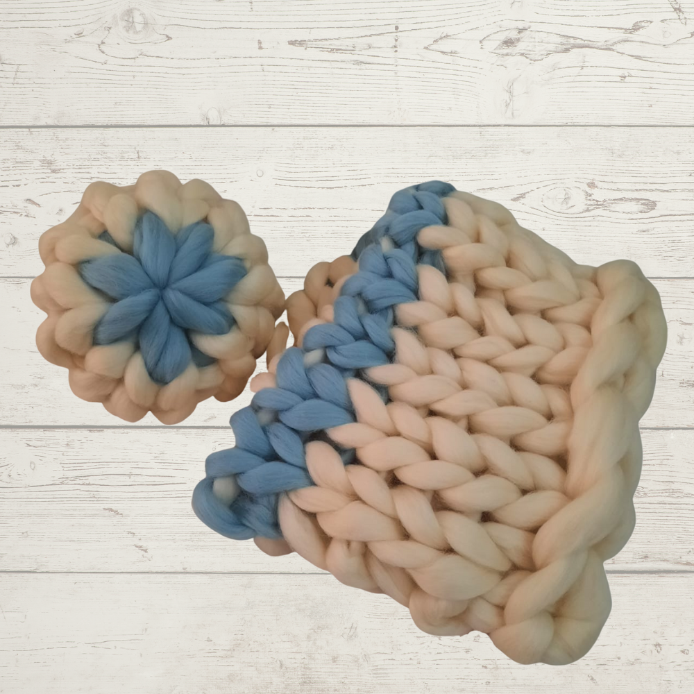 Manta (60 x 60) y cojín redondo pequeño (20 cms diametro)