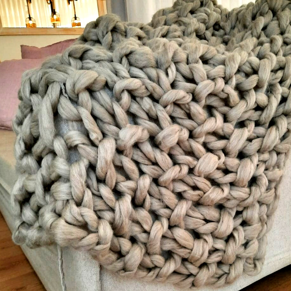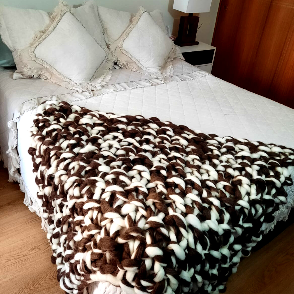 • Manta tejida a mano en vellón corriedale peinado